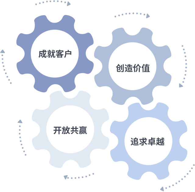 成就客户是一切决策的出发点,创造价值是衡量所有工作的标准,追求卓越是尊龙时凯做事做人的态度,开放共赢是尊龙时凯的格局也是最终的结果。价值观的齿轮环环相扣,推动着组织里的每个人不断向前。